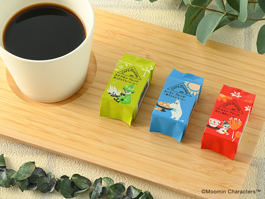 CAFE@HOMEの人気シリーズ ムーミンデザインセレクションは、ムーミンとその仲間たちをイメージしたコーヒーです。